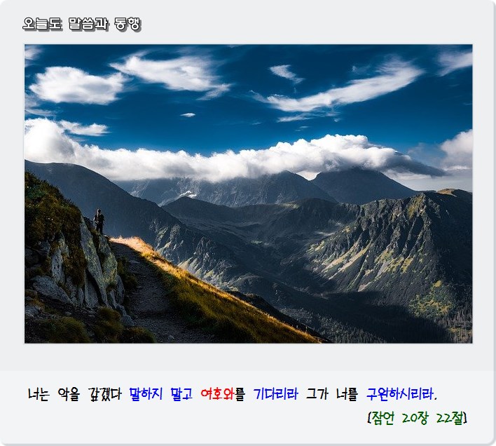 너는 악을 갚겠다 말하지 말고 여호와를 기다리라 그가 너를 구원하시리라. [잠언 20장 22절]