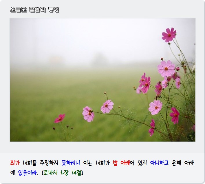 죄가 너희를 주장하지 못하리니 이는 너희가 법 아래에 있지 아니하고 은혜 아래에 있음이라. [로마서 6장 14절]