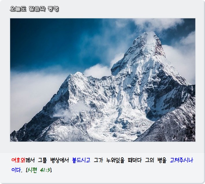 야훼께서 그를 병상에서 붙드시고 그가 누워있을 때마다 그의 병을 고쳐주시나이다. [시편41장3절]
