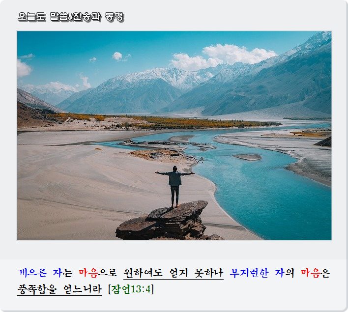 게으른 자는 마음으로 원하여도 얻지 못하나 부지런한 자의 마음은 풍족함을 얻느니라 [잠언13:4]