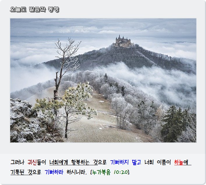 그러나 귀신들이 너희에게 항복하는 것으로 기뻐하지 말고 너희 이름이 하늘에 기록된 것으로 기뻐하라 하시니라. [누가복음 10:20]