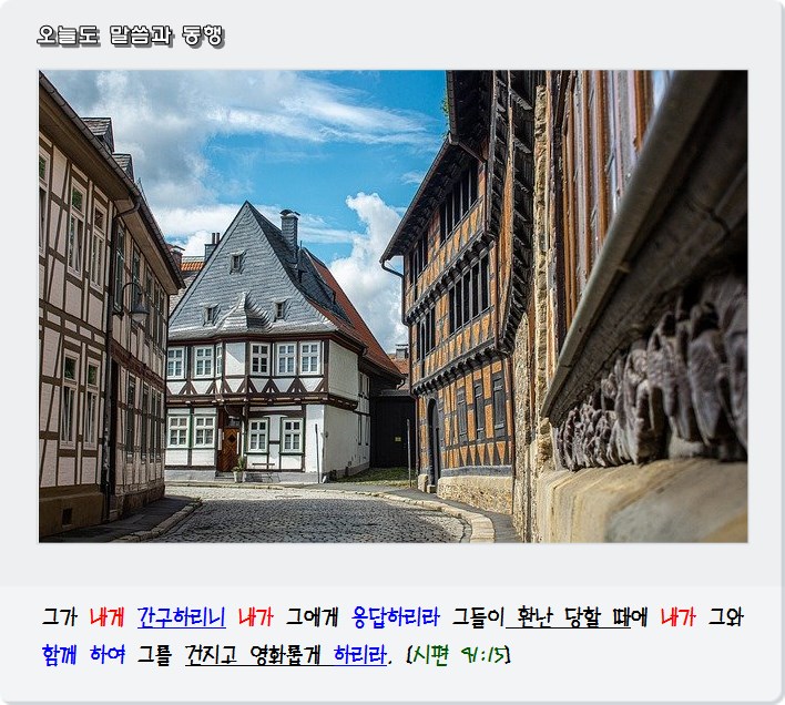 그가 내게 간구하리니 내가 그에게 응답하리라 그들이 환난 당할 때에 내가 그와 함께 하여 그를 건지고 영화롭게 하리라. [시편 91장 15절]